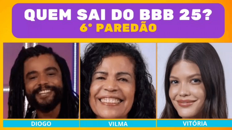Enquete BBB 25 6º Paredão: quem sai, Diogo, Vilma ou Vitória?