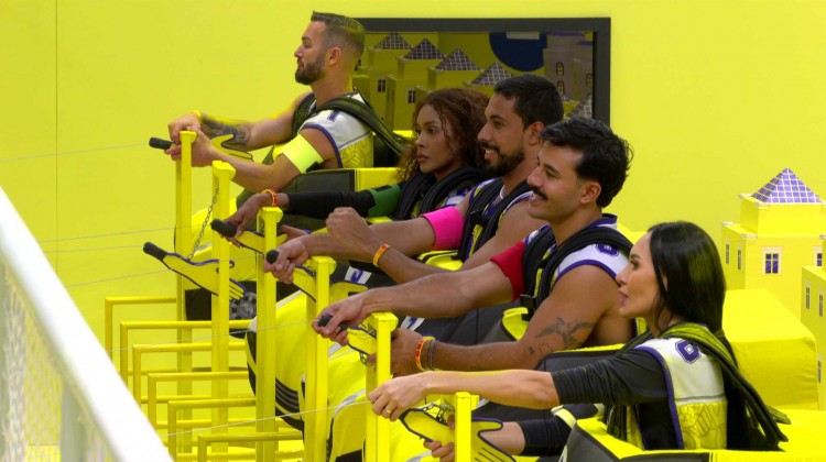 A primeira prova do BBB 25 chegou à sua primeira hora na madrugada desta terça-feira (14). Com a eliminação de Camilla e Thamiris nos primeiros 29 minutos de prova, agora restam dez duplas na briga pela imunidade. Os participantes encaram uma Prova de Resistência com consequências escolhidas pelo público.