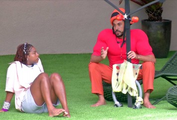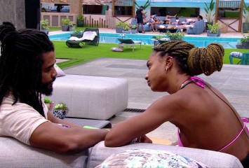 Diogo conversa com Aline sobre conexão e rivalidade no jogo Na área externa da casa, Aline e Dio...